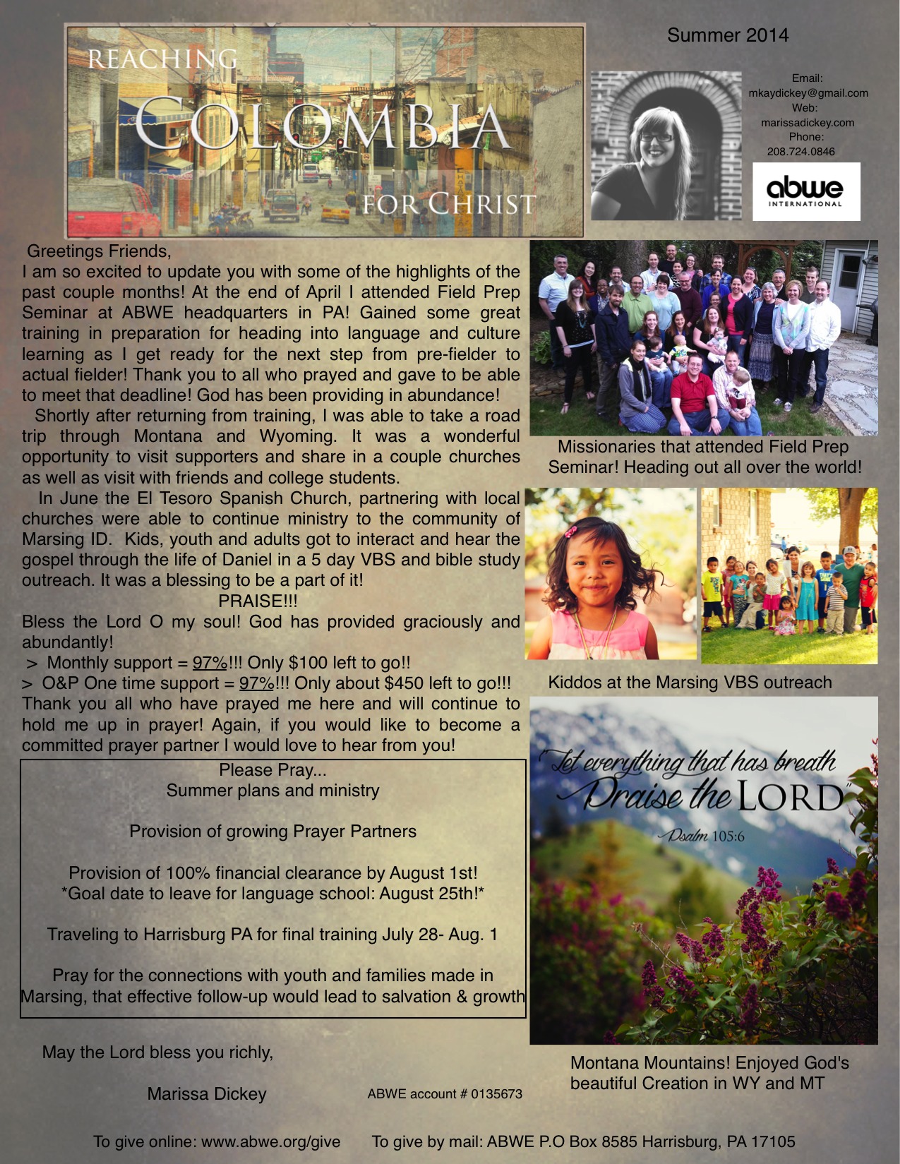 Summer Prayer Letter July 3, 2014 · by marissadickey · in Prayer Letters. · *Please Click on image for closer view* Share this: Click to share on X (Opens in new window) X Click to share on Facebook (Opens in new window) Facebook Like Loading... Related